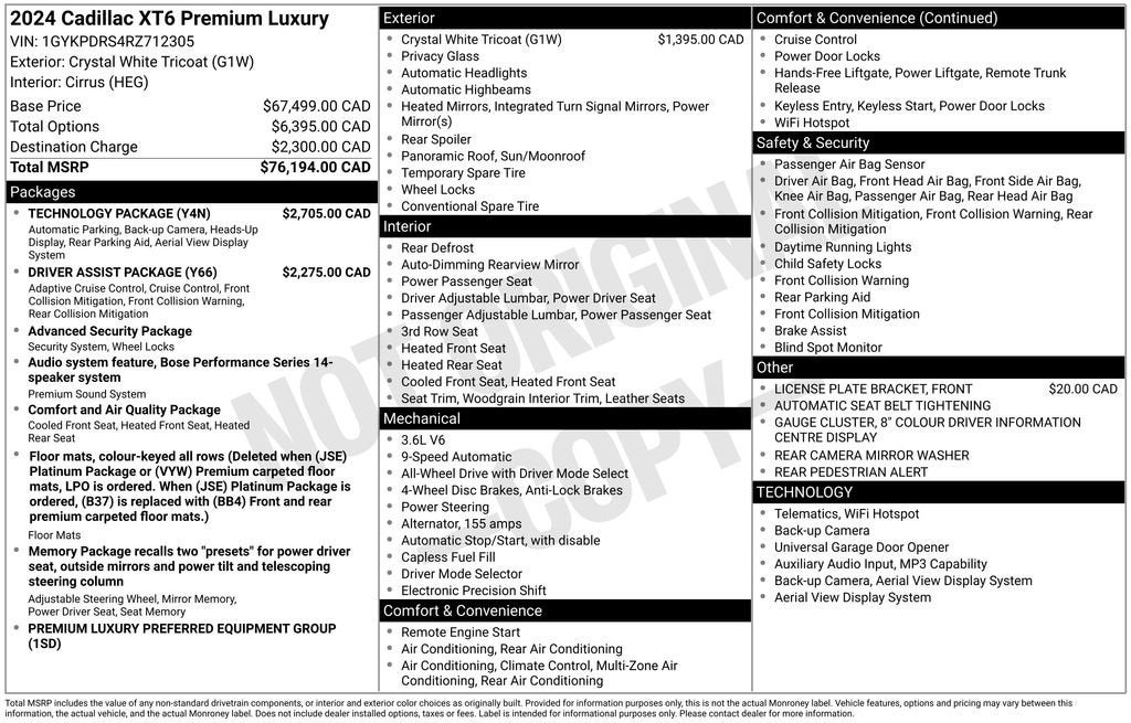 With its exceptional performance, innovative technology, and refined luxury appointments, this 2024 Cadillac XT6 Premium Luxury is the perfect blend of style, capability, and sophistication. Experience the difference for yourself by scheduling a test drive today. We're confident you'll be impressed by the XT6's exceptional value and exceptional ownership experience.